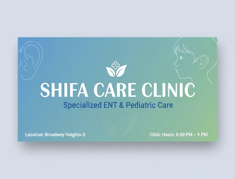 At Shifa Care Clinic, our mission is to deliver compassionate, high-quality, and patient-centered healthcare, with a dedicated focus on specialized Child Care and comprehensive Ear, Nose, and Throat (ENT) services. We are committed to promoting the optimal wellness and restoring the health of our community members, particularly by safeguarding the delicate health of children and providing expert solutions for conditions impacting the ear, nose, and throat. Through our accessible and trusted medical home, we strive to empower every patient with personalized care, advanced treatments, and clear communication, ensuring a healthier future for all who walk through our doors.